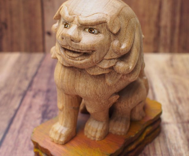 可愛い手のり一笑狛犬 京都八坂神社神殿狛犬より 木彫り ショップ 一笑仏工房 置物 Pinkoi